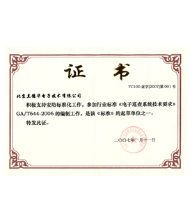 5. 蘭德華公司被列為《電子巡查國家行業標準》起草單位,公司主創人員王兵、張韶虞作為專家起草人之一